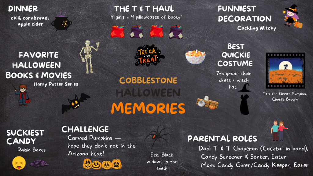 Sometimes it’s wicked hard to conjour up a holiday memory (like Halloween) to write about when you’re staring at a blank piece of paper or at a blank screen. It’s like trying to whip something up from… blankness.